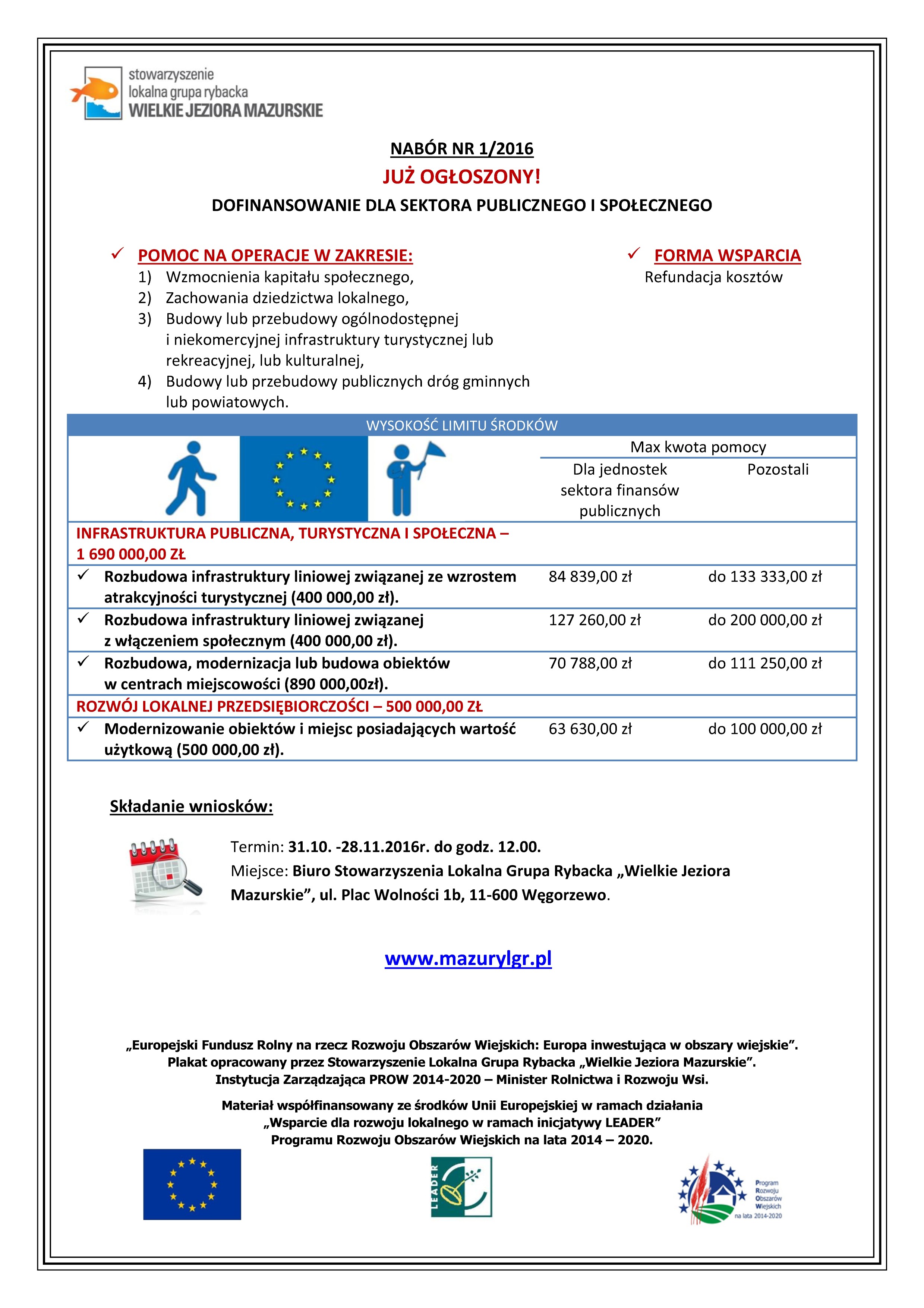 NABÓR NR 1/2016 JUŻ OGŁOSZONY!