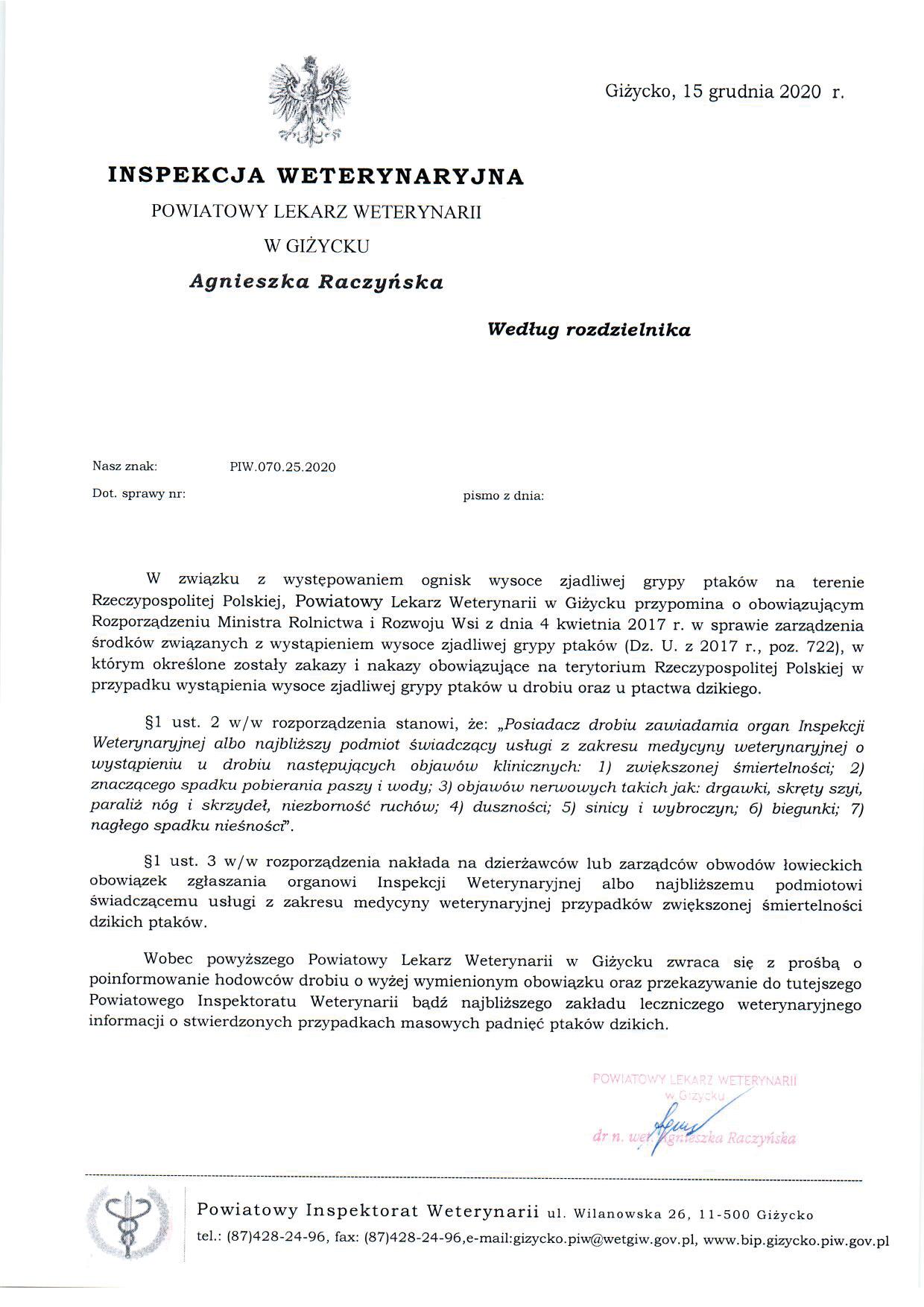 Komunikat Powiatowego Lekarza Weterynarii w Giżycku