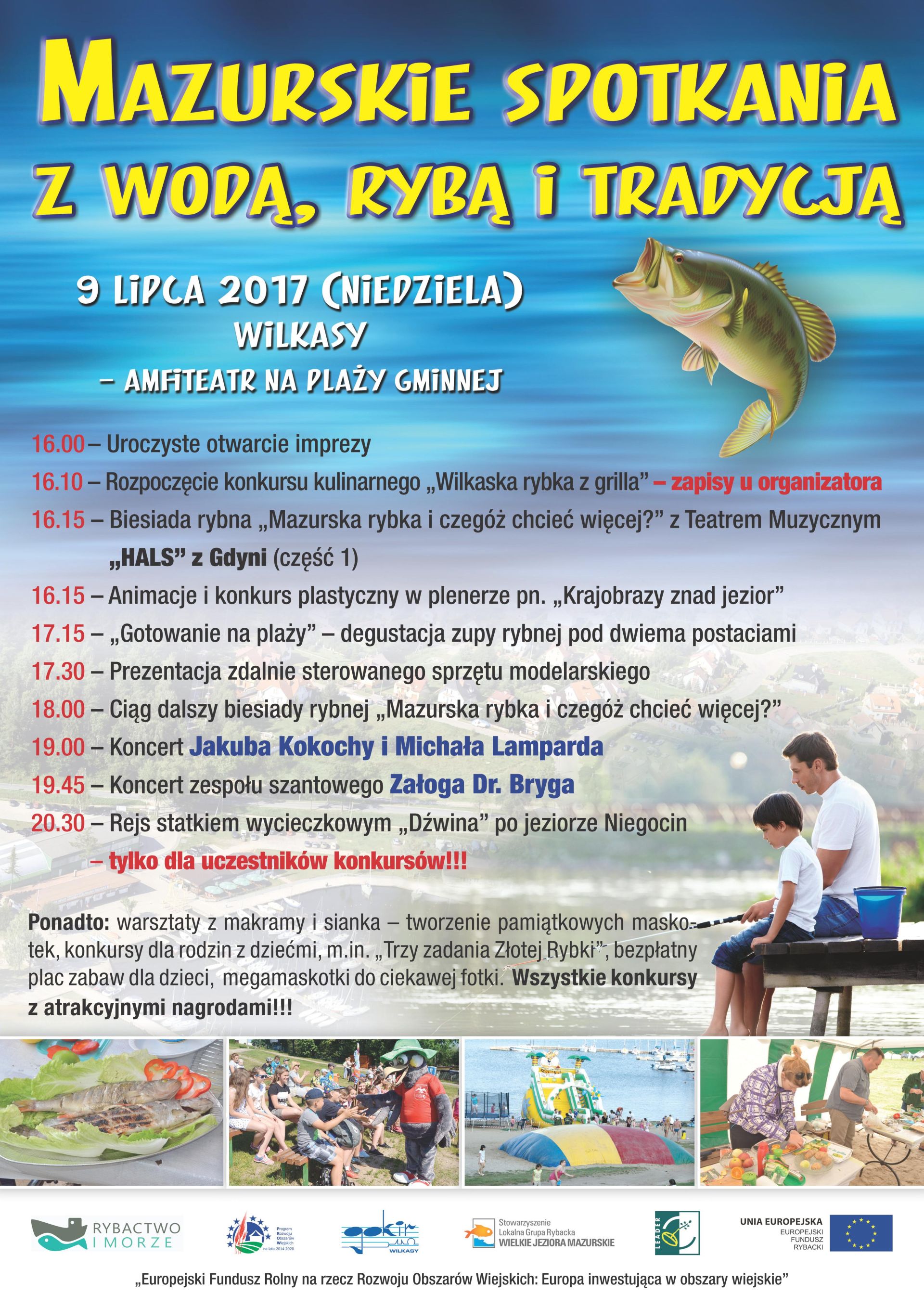 Organizator Gminny Ośrodek Kultury i Rekreacji w Wilkasach, finansowane ze środków Lokalnej Grupy Rybackiej "Wielkie Jeziora Mazurskie". Impreza odbędzie się w amfiteatrze na plaży gminnej w Wilkasach w niedzielę, 9 lipca, w godz. 16.00 - 21.30