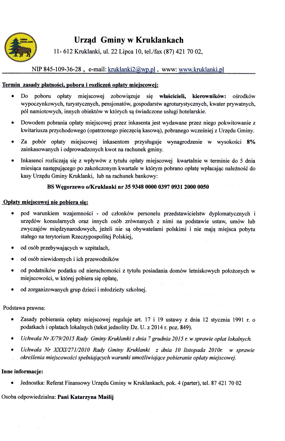 Do końca bieżącego roku planujemy przebudowę naszej strony internetowej www.kruklanki.pl . Będzie to nowoczesna witryna skierowana do Turystów, z której będzie można dowiedzieć się najważniejszych informacji o Gminie Kruklanki. Wszystkie podmioty, które odprowadziły opłatę miejscową w naszej gminie będą mogły liczyć na umieszczenie ich na stronie internetowej oraz promocję w Informacji Turystycznej.