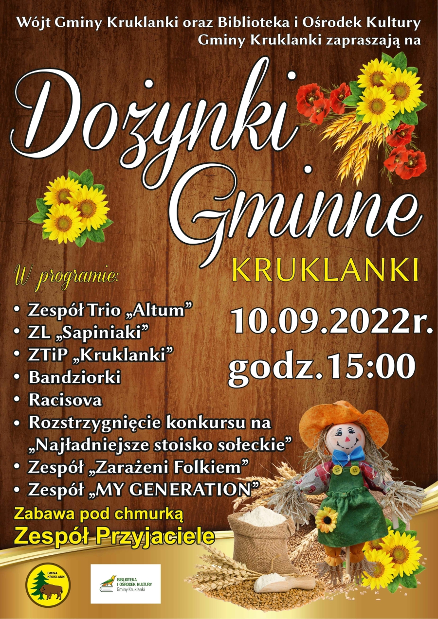 Serdecznie zapraszamy na Dożynki Gminne 10 września 2022 r., godz. 15:00.